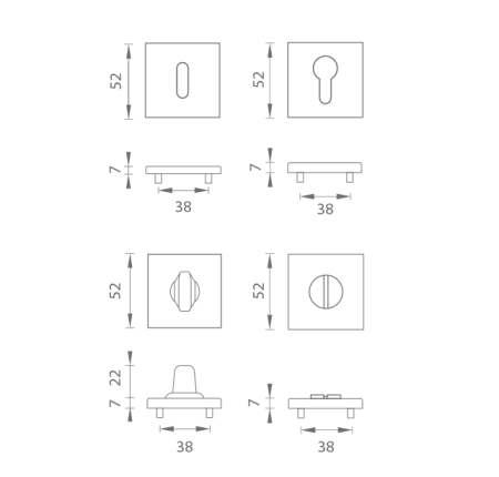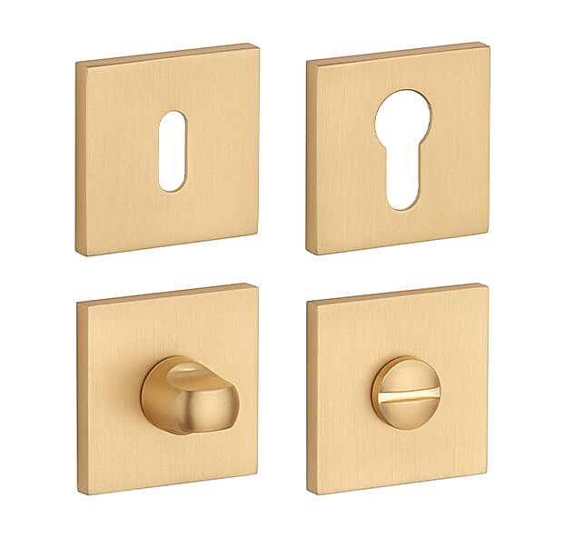 Die quadratische Rosette besteht aus hochwertigen Materialien - Zamak und ist oberflächenbehandelt. Die Rosette hat eine Größe von 52x52 mm, eine Dicke von 7 mm und ein ovales Loch für einen Innenschlüssel (BB), ein Loch für einen Zylindereinsatz (PZ), WC-Garnitur mit eingebautem Schlüssel. Die Packung enthält 2 Stück Rosetten (ein Paar) und die Toilettenrosetten sind als Set in der Packung enthalten.