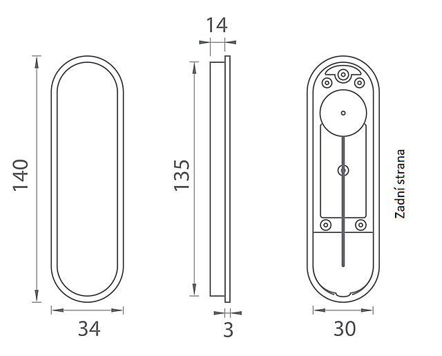 Das ovale Gehäuse ohne Loch besteht aus hochwertigem Zamak (Zinklegierung) und ist oberflächenveredelt. Im Lieferumfang sind Schrauben zur Befestigung durch die Tür enthalten.