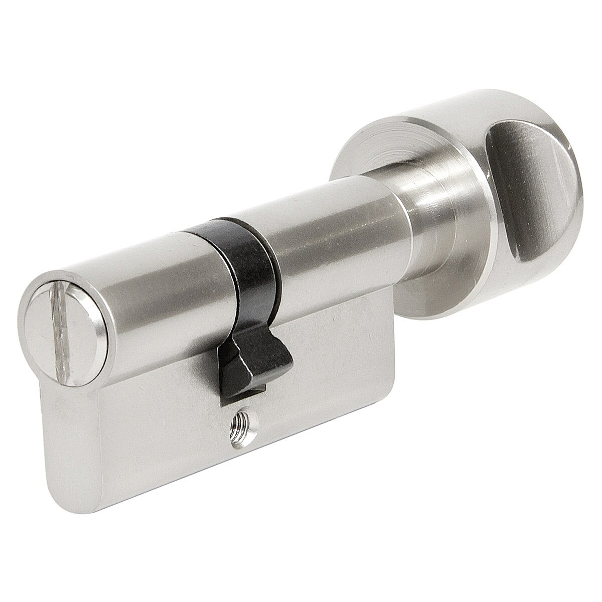 Von außen mit einer Münze oder einem flachen Schraubendreher, von innen mit einem Drehknopf.