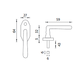 Die Rosette hat die Maße 27 mm x 64 mm und eine Dicke von 5 mm.