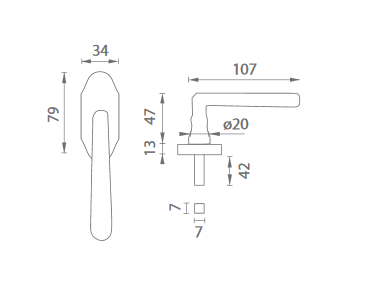 Die Rosette hat die Maße 34 mm x 79 mm und eine Dicke von 13 mm.