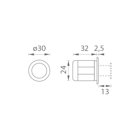 Das Produkt ist in erster Linie als Möbelgriff konzipiert, kann jedoch vielseitig eingesetzt werden – nicht nur zum Einsetzen in das Möbel, sondern auch in das Türblatt oder als Design-Aufhänger. Der Griff hat einen Durchmesser von 32 mm und die Montage erfolgt durch Einkleben in das vorbereitete Loch oder mithilfe der zum Griff gehörenden Unterlegscheiben und Schrauben.