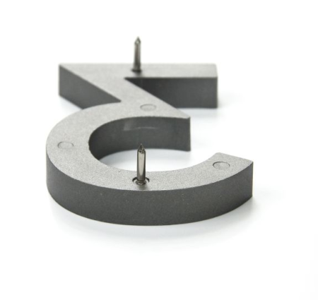 Aluminium-Nummer im „3D“-Design mit gebürsteter Oberfläche.