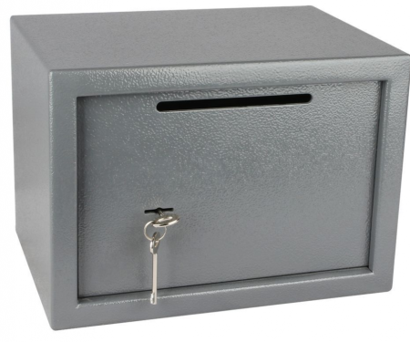 Einstecktresor aus Stahl mit mechanischem Schloss.