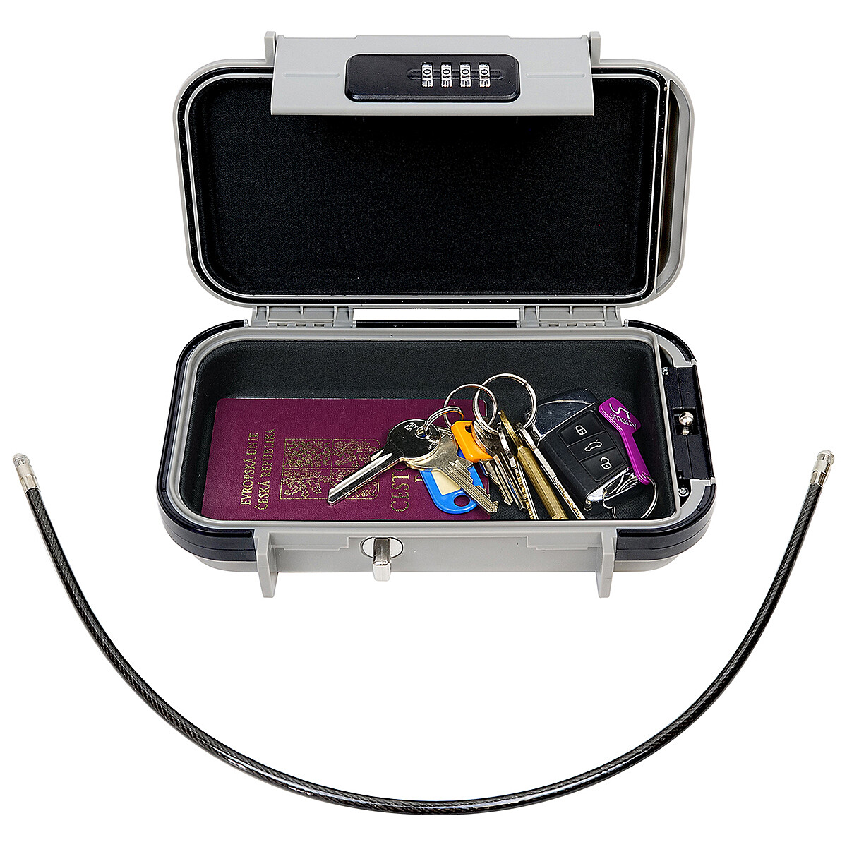 Mobiler wasserdichter Safe (Depot) aus gehärtetem Kunststoff zur Aufbewahrung von Schlüsseln, Geld und Ausweisen