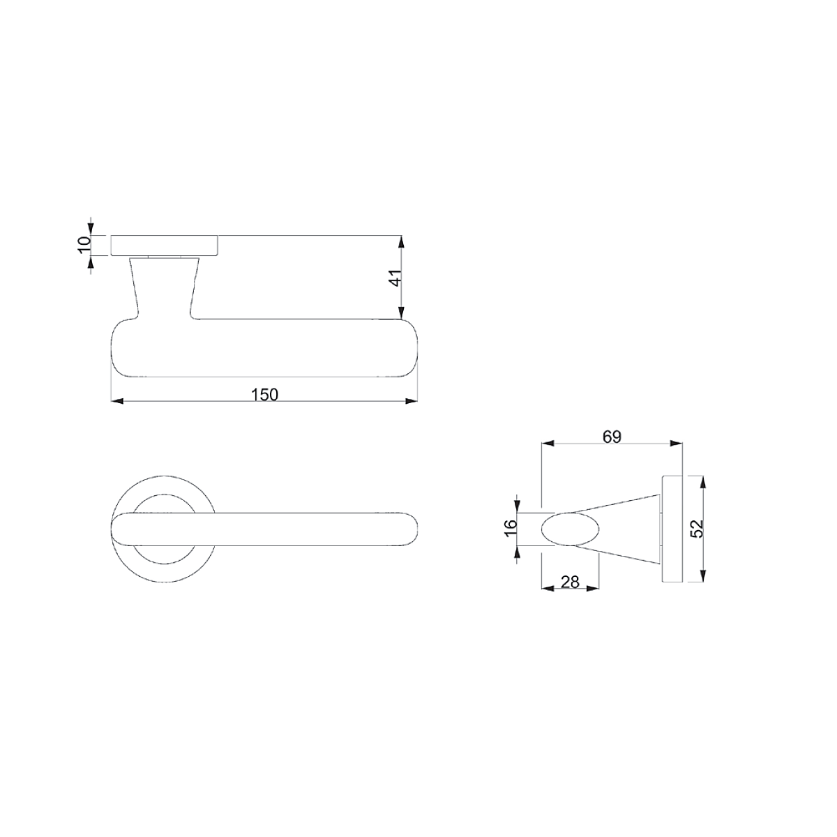 Der Rosettengriff CASTA für Innentüren mit runder Rosette besteht aus hochwertigem gehärtetem Polyamid. Die Rosette hat einen Durchmesser von 52 mm und eine Dicke von nur 10 mm.