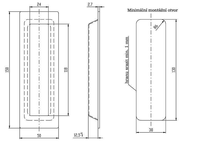 Muscheln für Schiebetüren ROSTEX quadratisch 50x150mm (MATTSCHWARZ)