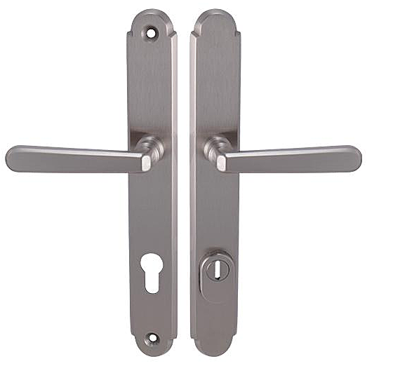Bei verstärkten Beschlägen ist der Abstand zwischen der Achse des Griffs und der Achse des Schlüssels (Raster) wichtig. Der Standardabstand beträgt 72, 90 oder 92 mm. Beschläge mit einem Raster von 72 und 90 mm sind Standard für Türstärken von 38 mm bis 50 mm. Beschläge mit einem Raster von 92 mm sind Standard für Türstärken von 68 mm bis 78 mm.