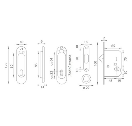 Rundes Schiebetürset mit Loch für Innenschlüssel (BB).