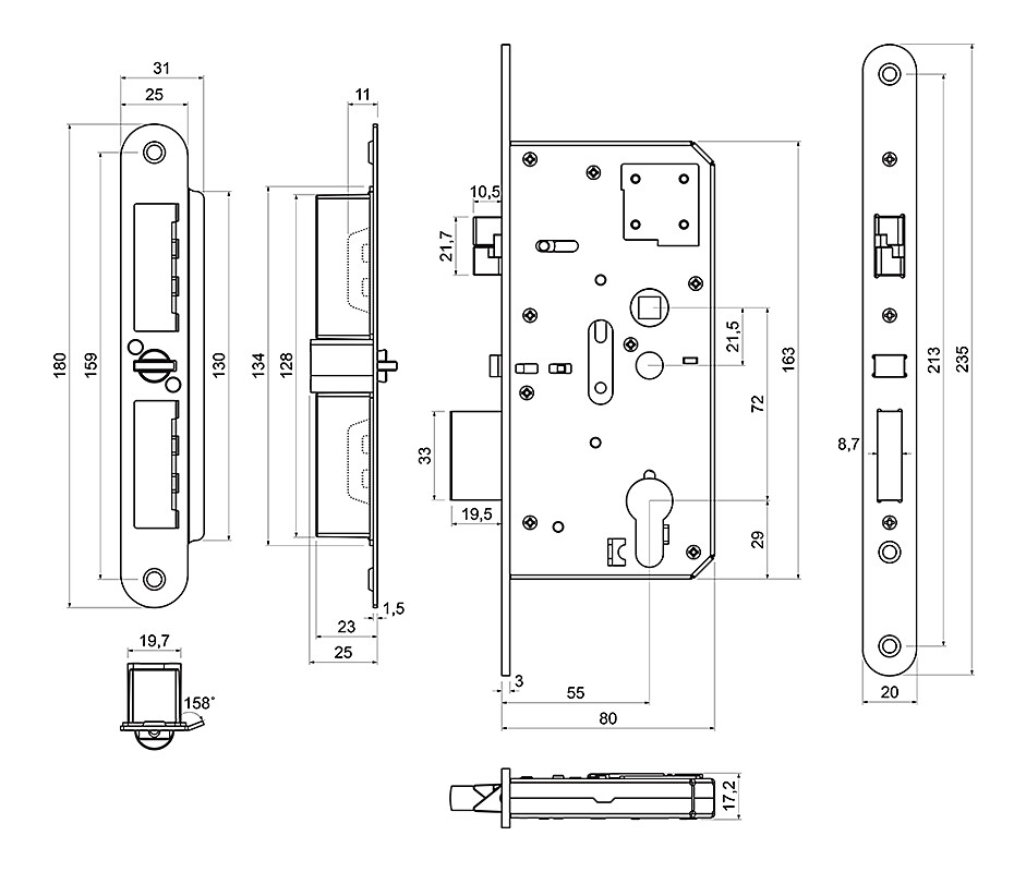 Einsteckschloss mit Panikfunktion „E“, selbstverriegelnd, für Kugel-/Drückergarnituren