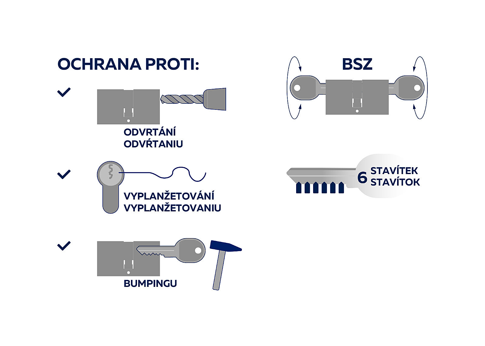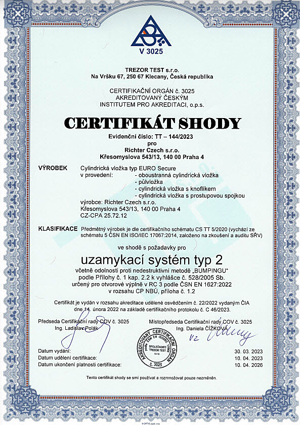 - Zertifiziert in der Sicherheitsklasse RC3 gemäß ČSN EN 1627:2012.