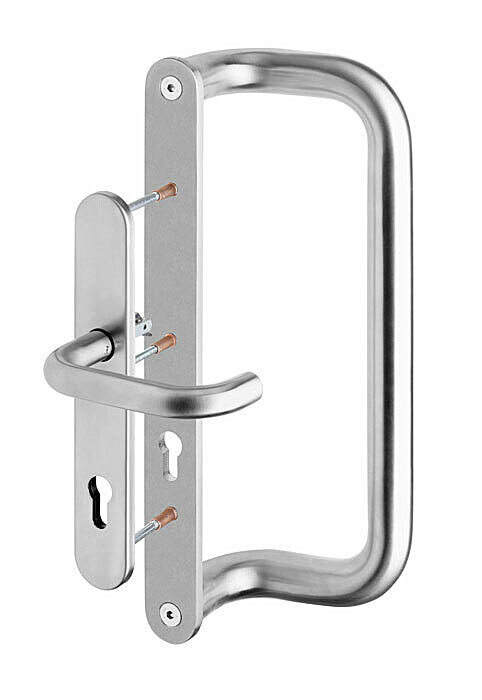 Edelstahlbeschläge sind sowohl für rechts- als auch für linksseitige Eingangsprofiltüren geeignet.