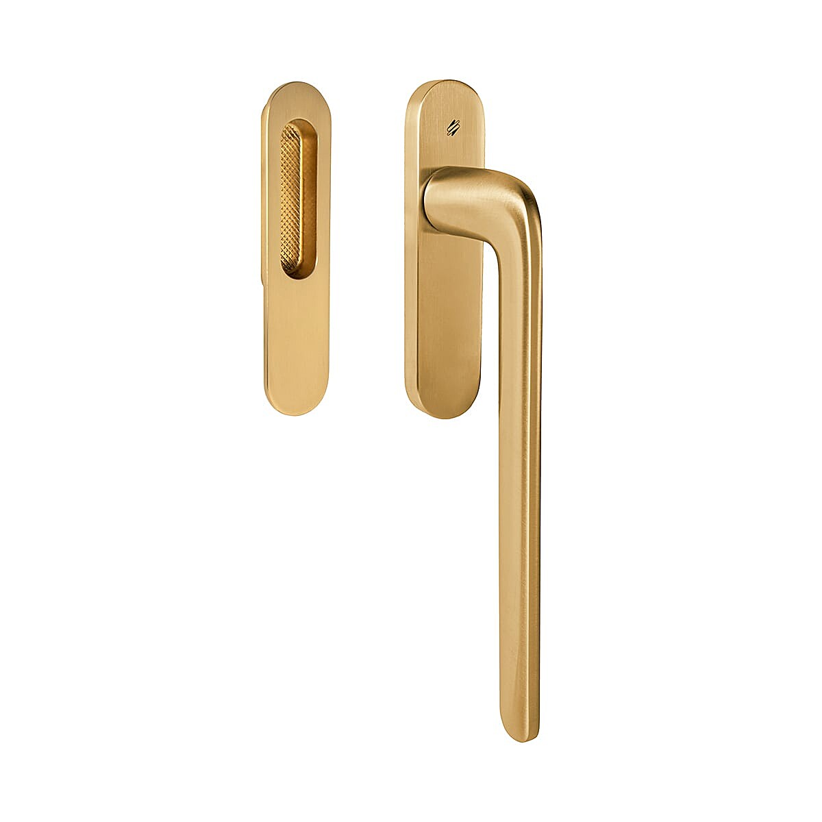 Der Griff für die Schiebetüren ist aus Messing gefertigt und hat eine Oberflächenveredelung.