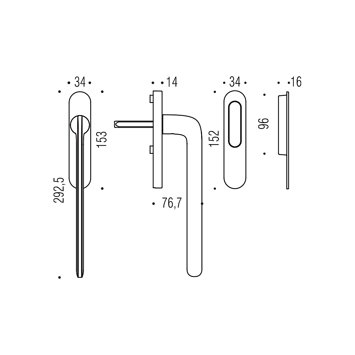 Die ovale Rosette hat die Abmessungen 34 mm x 153 mm und eine Dicke von 14 mm.