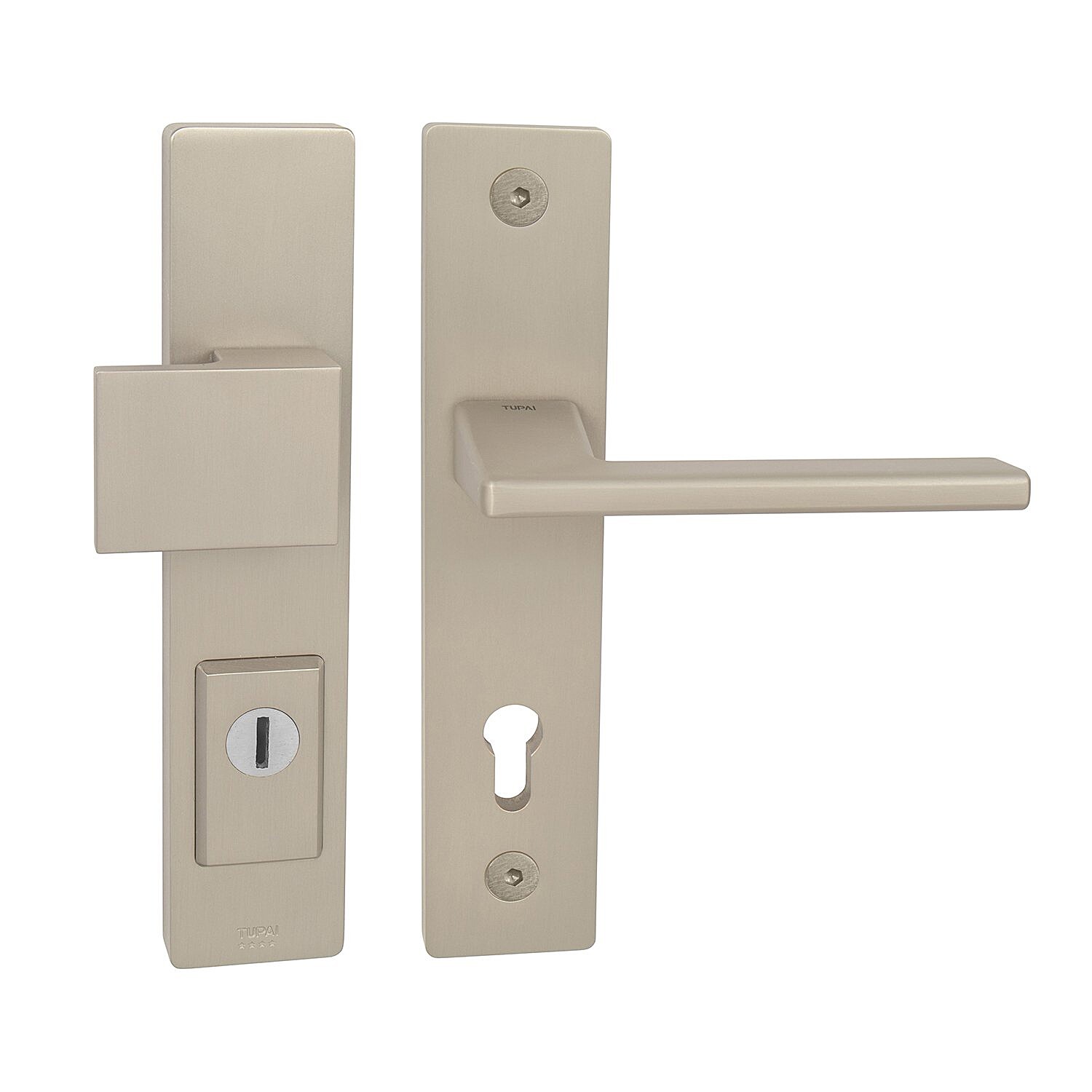 Bei Sicherheitsbeschlägen ist die Kenntnis des Abstandes zwischen der Drückerachse und der Schlüsselachse (Teilung) erforderlich. Der Standardabstand beträgt 72, 90 oder 92 mm. Für Türstärken von 38 mm bis 50 mm sind Beschläge mit 72 und 90 mm Entfernung Standard. Für Türstärken von 68 mm bis 78 mm sind Beschläge mit 92 mm Teilung Standard.