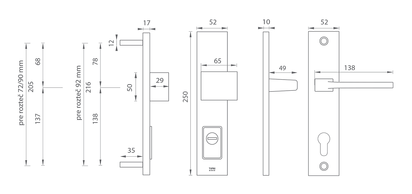 Da wir direkt an der Entwicklung der TUPAI SAFETY LINE beteiligt waren, können wir für die Qualität dieser äußerst langlebigen Armatur garantieren. Die Verankerung des Handlaufs auf zwei hochfesten Schrauben sorgt für eine lebenslange Fixierung ohne die Möglichkeit eines spontanen Lösens. Die Stahlgewindebuchsen, die die Schraube durch die Tür sichern, sind durch eine Stahlkugel und Unterlegscheibe gegen Aufbohren geschützt. Die Stahlauflage wird von innen mit 4 stabilen Schrauben befestigt und die Verlängerung der Einlegeauflage ist bis zu 3 mm verstellbar. Der Mechanismus ermöglicht die Verriegelung durch Ziehen des Griffes nach oben. Der Beschlag verfügt über einen eigenen Rückstellmechanismus - eine Feder, die unabhängig vom Schloss die waagerechte Stellung des Drückers sicherstellt.