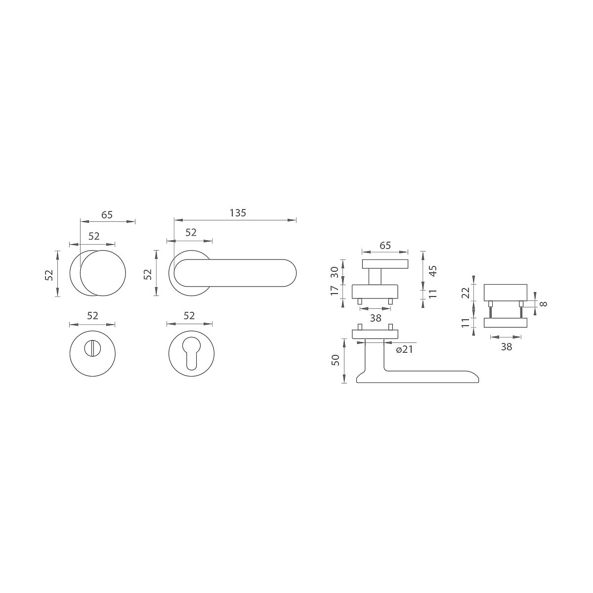 Der Sicherheits-Innenrosettengriff für Eingangs- und Sicherheitstüren mit runder Rosette mit Zylinderabdeckung besteht aus hochwertigen Materialien - Zamak / Stahl und ist oberflächenbehandelt. Die runde Rosette hat einen Durchmesser von 52 mm und eine Dicke von 17 mm.