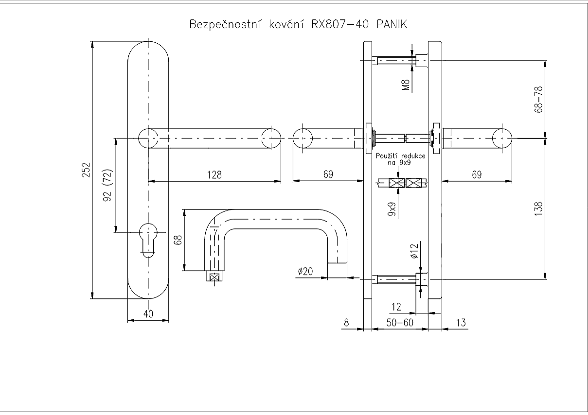 Sicherheitsbeschläge ROSTEX RX807-40 PANIC (Edelstahl matt)