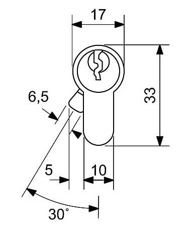 - Sicherheitszylinder mit 6 Bit, der bohrfest ist und über eine zerstörungsfreie dynamische Öffnungsmethode (sogenanntes Bumpen) verfügt, sowie über eine Durchgangslochkupplung (BSZ) = der Zylinder kann auch dann entriegelt werden, wenn der Schlüssel von der anderen Seite eingeführt wird.