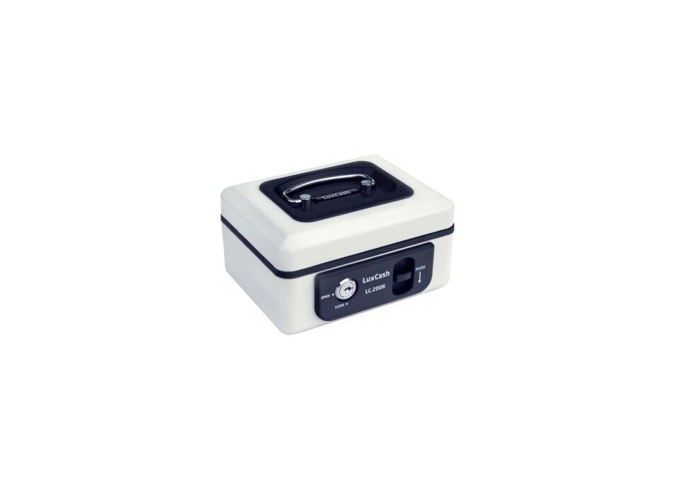 Geldkassette aus Stahl mit einem Hebel zum bequemen Öffnen des Deckels und einer Sperre gegen unbeabsichtigtes Schließen