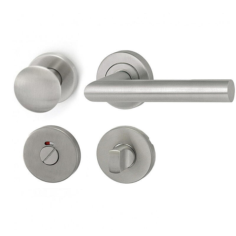 Dieser Türbeschlag ist in einer Ausführung für einen normalen Schlüssel (BB), einen Zylindereinsatz (PZ) oder mit WC-Verriegelung und Verriegelungsanzeige für Bad oder Toilette erhältlich.