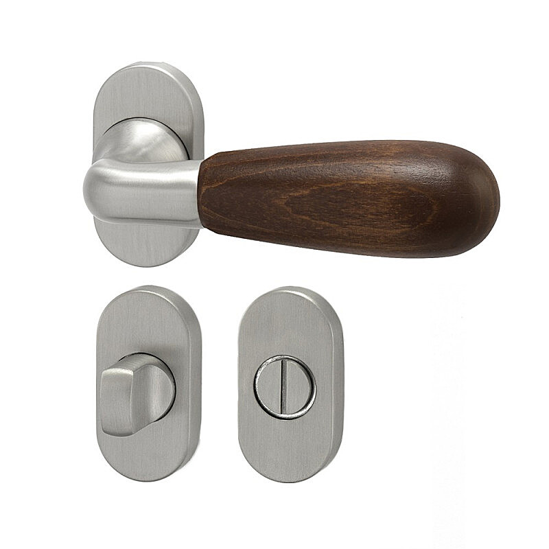 Dieser Türbeschlag ist in der Ausführung mit ovaler Rosette für einen gewöhnlichen Schlüssel (BB), Zylindereinsatz (PZ) oder mit WC-Verriegelung für Bad oder WC mit Holzgriff in den Farben Holz weiß, Holz natur, Kirsche erhältlich , Mahagoni, Akazie oder Ebenholz.