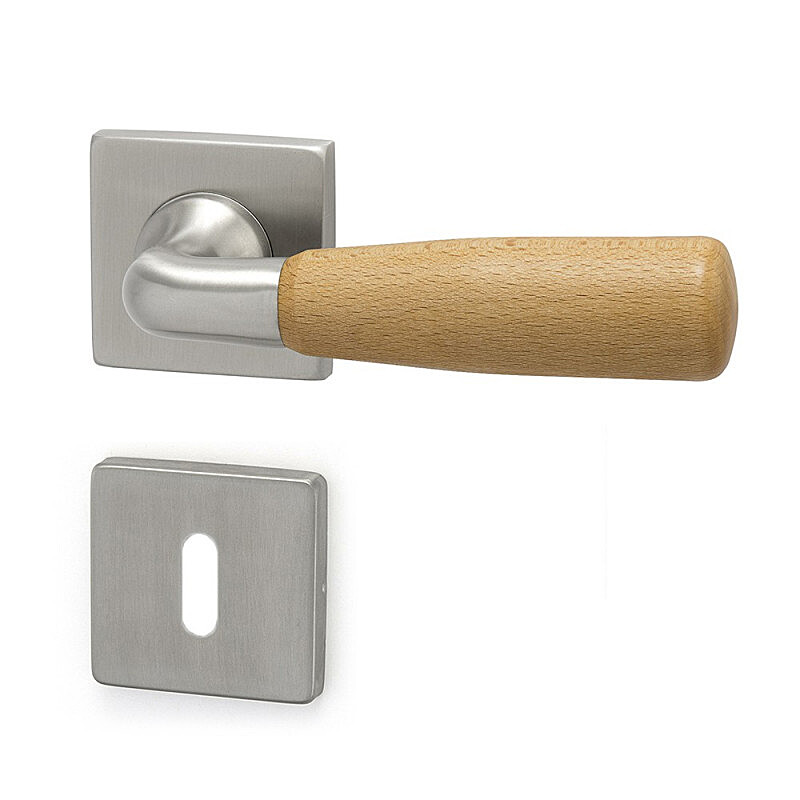 Der Türgriff WS 01 mit Vierkantgriff ist für die Montage im Innen- und Außenbereich geeignet, gefertigt aus Edelstahl DIN 1.4301 mit seidenmatter Oberfläche und einem Griff aus Buchenholz in modernem und zeitlosem Design, hygienisch unbedenklich, mit langer Lebensdauer . Die Oberflächenbehandlung des Edelstahlteils erfolgt durch Bürsten, es werden keine anderen Lacke darauf aufgetragen oder Oberflächenbehandlungen durchgeführt.