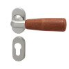 Dieser Türbeschlag ist in einer Ausführung mit ovaler Rosette für einen gewöhnlichen Schlüssel (BB), einem Zylindereinsatz (PZ) oder mit einem WC-Schloss mit Verschlussanzeige für Bad oder WC mit Holzgriff in der Farbe Weiß erhältlich Holz, Naturholz, Kirsche, Mahagoni, Akazie oder Ebenholz.