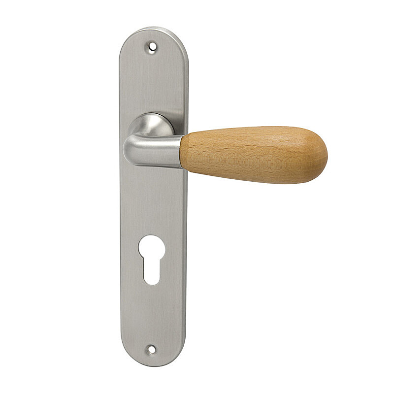 Der Türgriff WSS 00 mit Schild ist für die Montage im Innen- und Außenbereich geeignet, gefertigt aus Edelstahl DIN 1.4301 mit seidenmatter Oberfläche und einem Griff aus Buchenholz in modernem und zeitlosem Design, hygienisch unbedenklich, mit langer Lebensdauer. Die Oberflächenbehandlung erfolgt durch Bürsten, es werden keine anderen Lacke aufgetragen oder andere Oberflächenbehandlungen vorgenommen. Es ist resistent gegen den sogenannten „Ringeffekt“ – Kratzer oder Absplitterungen am Ring oder anderen Metallgegenständen.