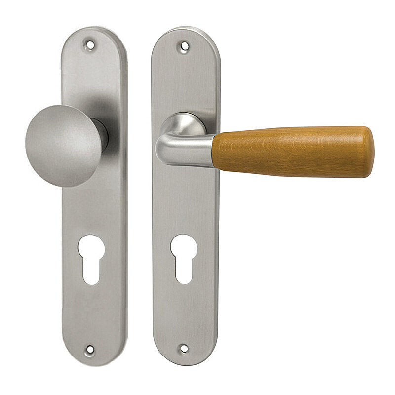 Erhältlich ist dieser Türbeschlag mit Schildabstand 72 und 90 mm in der Ausführung für Normalschlüssel (BB), Zylindereinsatz (PZ) oder mit WC-Verriegelung für Bad oder WC mit Holzgriff in der Farbe Holz weiß, Naturholz, Kirsche, Mahagoni, Akazie oder Ebenholz.