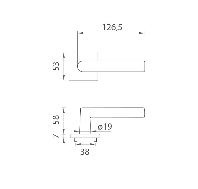 Der Rosettengriff für Innentüren mit quadratischer Rosette ist aus hochwertigen Materialien – Zamak – gefertigt und verfügt über eine Oberflächenbehandlung. Die Rosette misst 52x52 mm und ist nur 7 mm dick. Das minimalistische Design der Rosette mit hoher Stabilität des Türgriffs wirkt dezent und lässt Raum für die Hervorhebung des Designs des Griffs.