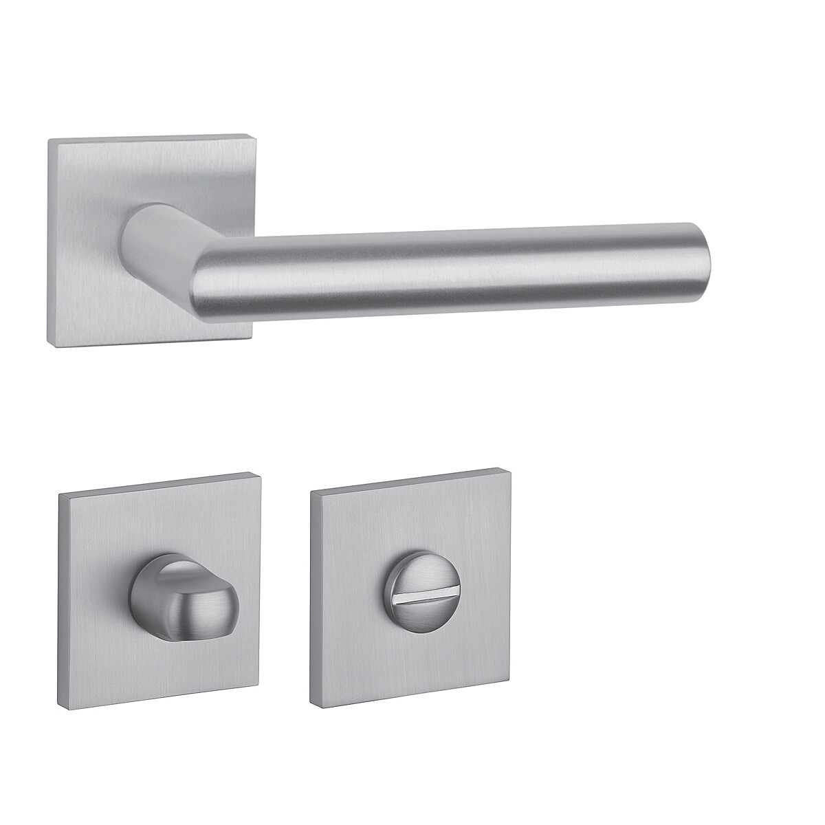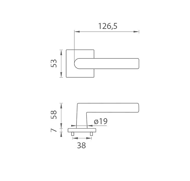 Der Rosettengriff für Innentüren mit quadratischer Rosette ist aus hochwertigen Materialien – Zamak – gefertigt und verfügt über eine Oberflächenbehandlung. Die Rosette misst 52x52 mm und ist nur 7 mm dick. Das minimalistische Design der Rosette mit hoher Stabilität des Türgriffs wirkt dezent und lässt Raum für die Hervorhebung des Designs des Griffs.