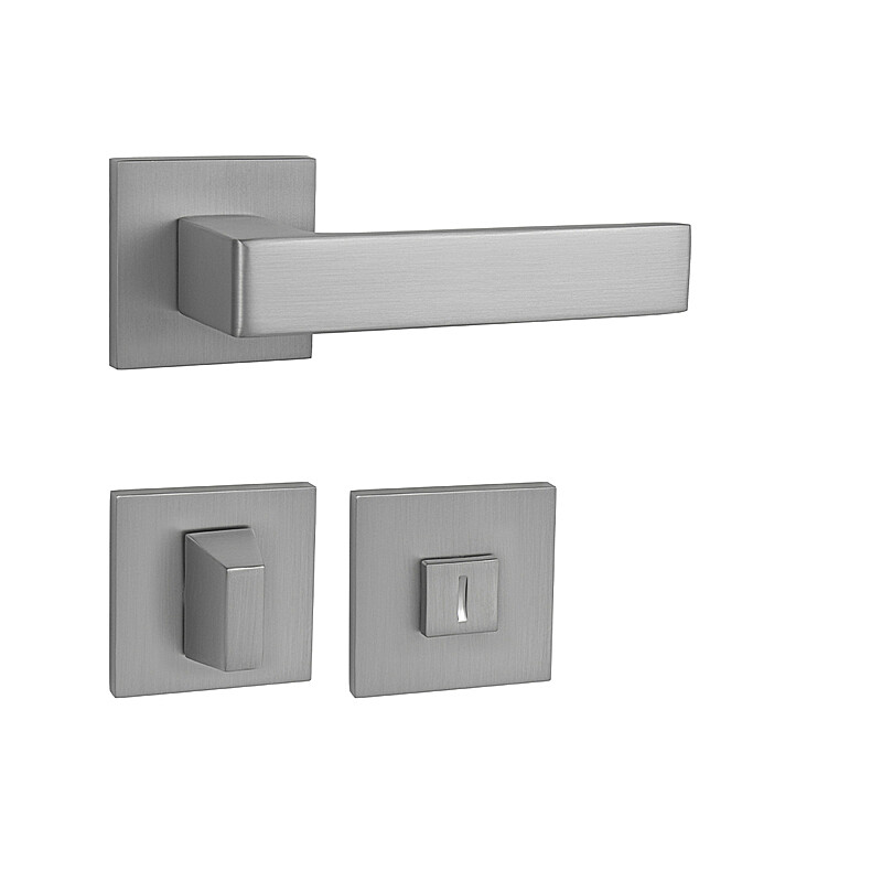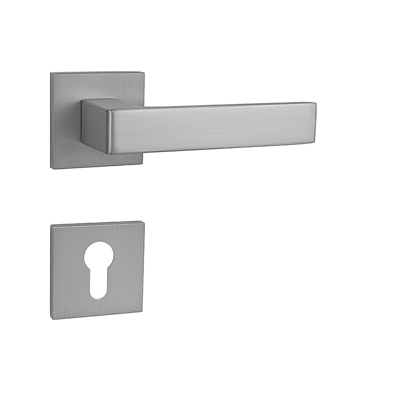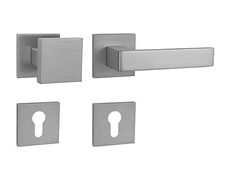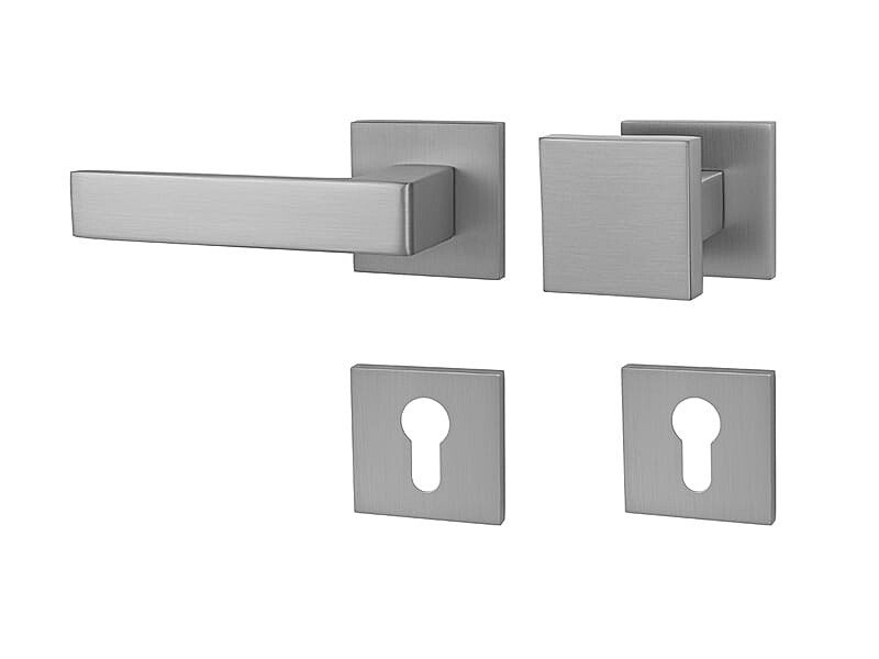 Der Rosettengriff für Innentüren mit quadratischer Rosette ist aus hochwertigen Materialien – Zamak – gefertigt und verfügt über eine Oberflächenbehandlung. Die Rosette hat die Maße 53 mm x 53 mm und eine Dicke von 6 mm.