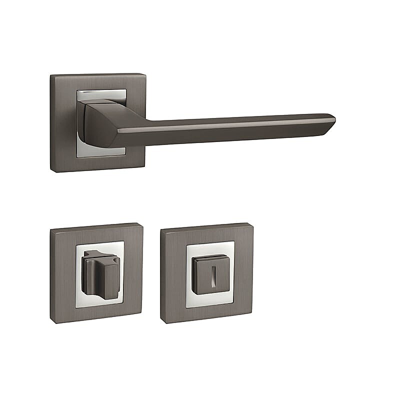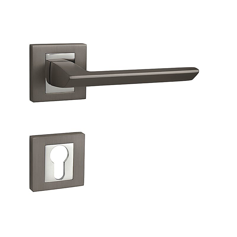 Der Rosettengriff an der Innentür mit quadratischer Rosette ist im Gussverfahren aus hochwertigen Zink- und Aluminiumlegierungen gefertigt und oberflächenbehandelt. Die Rosette hat die Maße 52 mm x 52 mm und eine Dicke von 10 mm. Der Griff ist oberflächenverzinkt und zeichnet sich durch eine hohe Korrosionsbeständigkeit aus. Die Armaturen werden auf 100.000 Zyklen getestet.