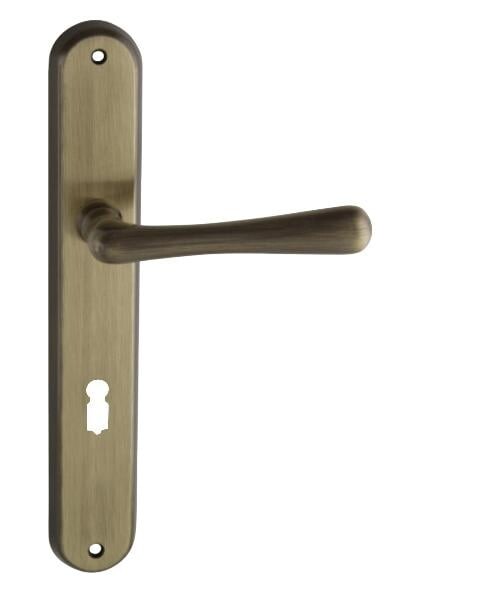 Der Schildgriff an der Innentür mit ovalem Schild besteht aus hochwertigen Materialien – Messing und ist oberflächenbehandelt. Der ovale Schild misst 37 mm x 240 mm und der Griff verfügt über einen Rückholmechanismus.