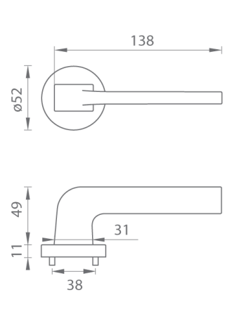 Der Rosettengriff an der Innentür mit runder Rosette besteht aus hochwertigen Materialien - Zamak und ist oberflächenbehandelt. Die Rosette hat einen Durchmesser von 52 mm und eine Standardstärke von 11 mm.