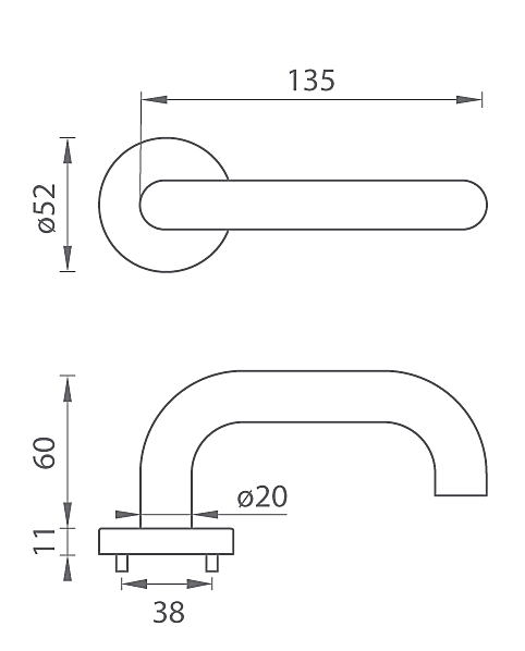 Der Rosettengriff für Innentüren mit runder Rosette besteht aus hochwertigem Edelstahl, sogenanntem Edelstahl, und ist oberflächenbehandelt. Die Rosette hat einen Durchmesser von 52 mm und eine Standarddicke von 11 mm.