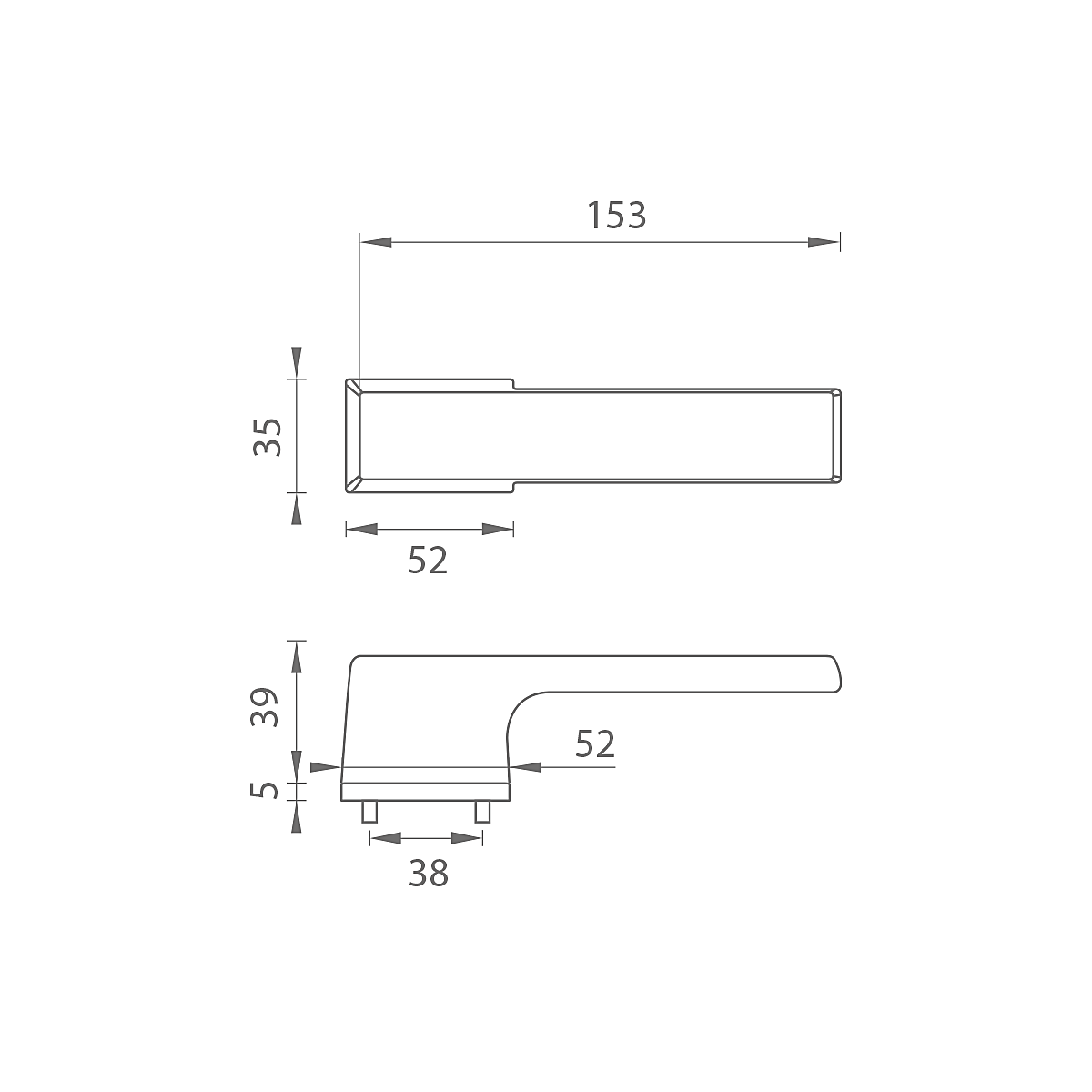 Der Rosettengriff an der Innentür mit rechteckiger Rosette besteht aus hochwertigen Materialien - Zamak und ist oberflächenbehandelt. Die Rosette hat die Maße 52 mm x 35 mm und eine Standardstärke von 11 mm. Die Rosette selbst ist Teil des Griffdesigns.