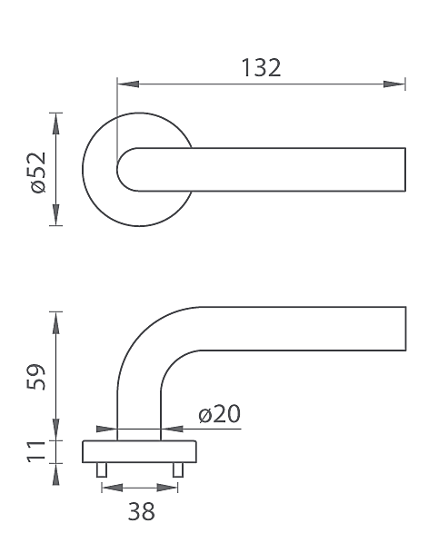 Der Rosettengriff für Innentüren mit runder Rosette besteht aus hochwertigem Edelstahl, sogenanntem Edelstahl, und ist oberflächenbehandelt. Die Rosette hat einen Durchmesser von 52 mm und eine Standarddicke von 11 mm.