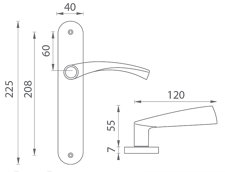 Der Schildgriff an der Innentür mit ovalem Schild besteht aus Aluminium und ist oberflächenbehandelt. Der ovale Schild misst 40 mm x 225 mm und der Griff verfügt über keinen Rückholmechanismus.
