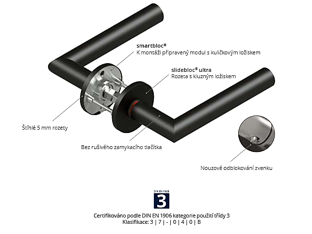 Dank der innovativen Fallenschlossfunktion bietet das smartbloc®-System eine sichere Lösung zum Verriegeln von Türen, ohne dass ein herkömmliches Schloss verwendet werden muss. Dieses einzigartige System ermöglicht ein einfaches und schnelles Verriegeln der Tür durch Drücken des Griffs und sorgt so für zusätzliche Sicherheit. Diese benutzerfreundliche Funktion ist besonders praktisch in Räumen, in denen Privatsphäre oder Sicherheit regelmäßig und kurzfristig erforderlich sind.