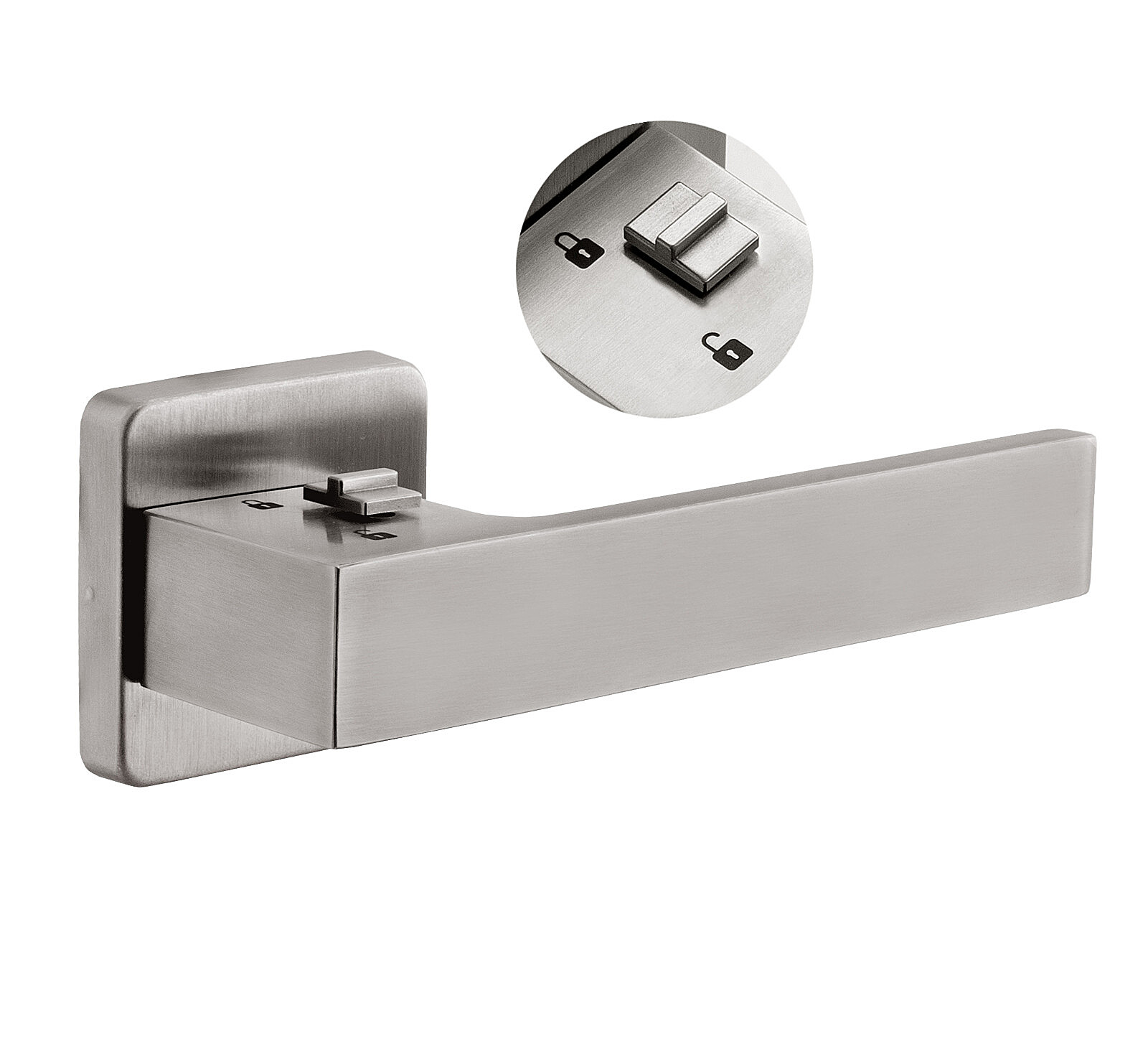 Abschließbarer Griff RAVENA/H BLOK für Innentüren von Toiletten und Badezimmern, mit der Möglichkeit einer Notöffnung von außen.