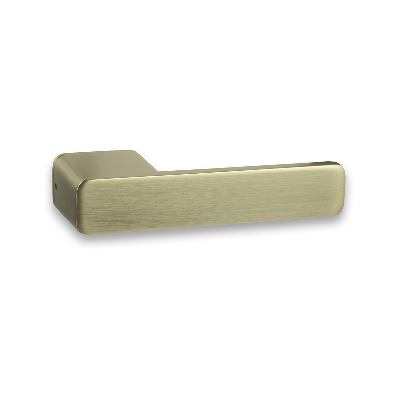 Elegantes Design ohne Bodenrosetten, dafür mit filigranen Rosetten unter dem Griff mit Erhebungen. Rückholfeder und Befestigungsmaterial für Türen mit einer Stärke von 38–50 mm.