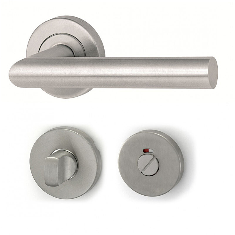 Dieser Türbeschlag ist in einer Ausführung für einen normalen Schlüssel (BB), einen Zylindereinsatz (PZ) oder mit WC-Verriegelung und Verriegelungsanzeige für Bad oder Toilette erhältlich.