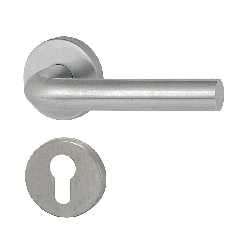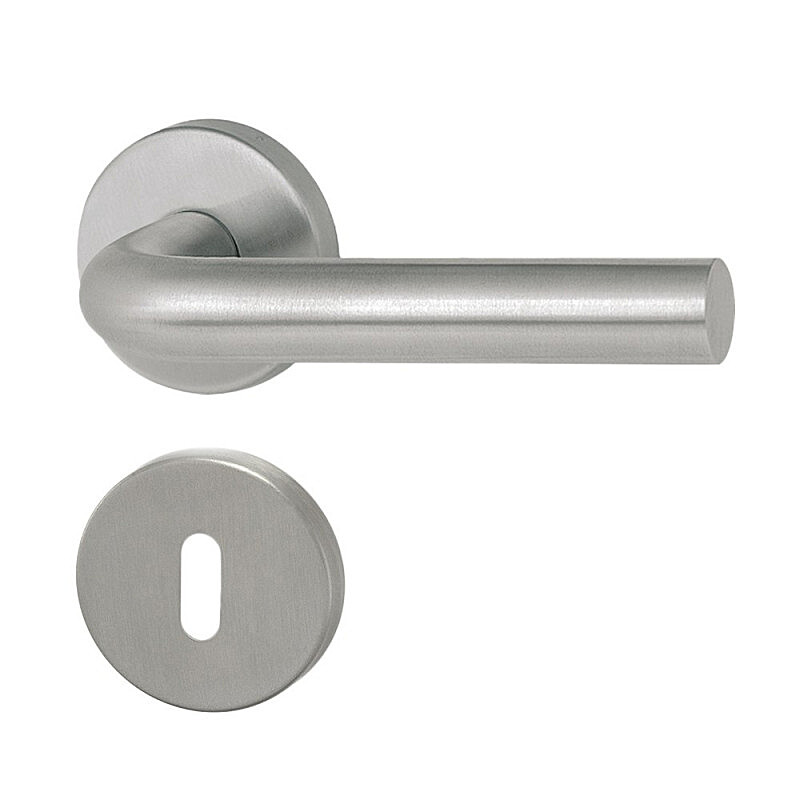 Der Türgriff MT 01 mit runder, quadratischer oder ovaler Rosette eignet sich für die Montage im Innen- und Außenbereich, ist aus Edelstahl DIN 1.4301 gefertigt, hat eine satinierte, matte Oberfläche, ein modernes und zeitloses Design, ist hygienisch unbedenklich und langlebig.