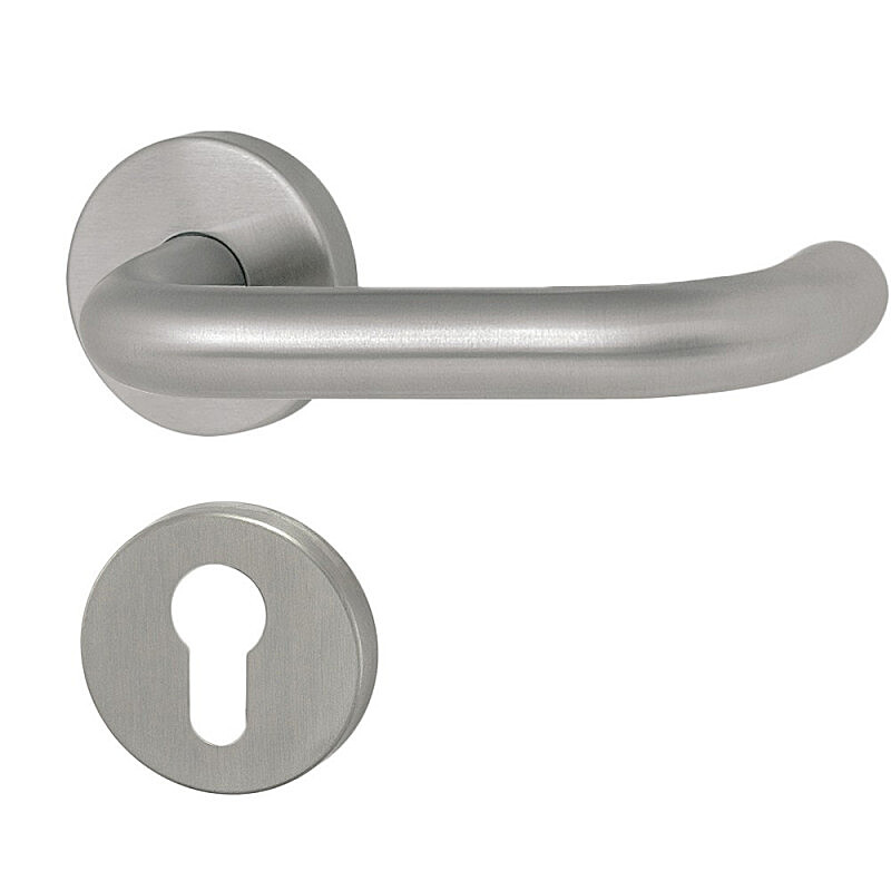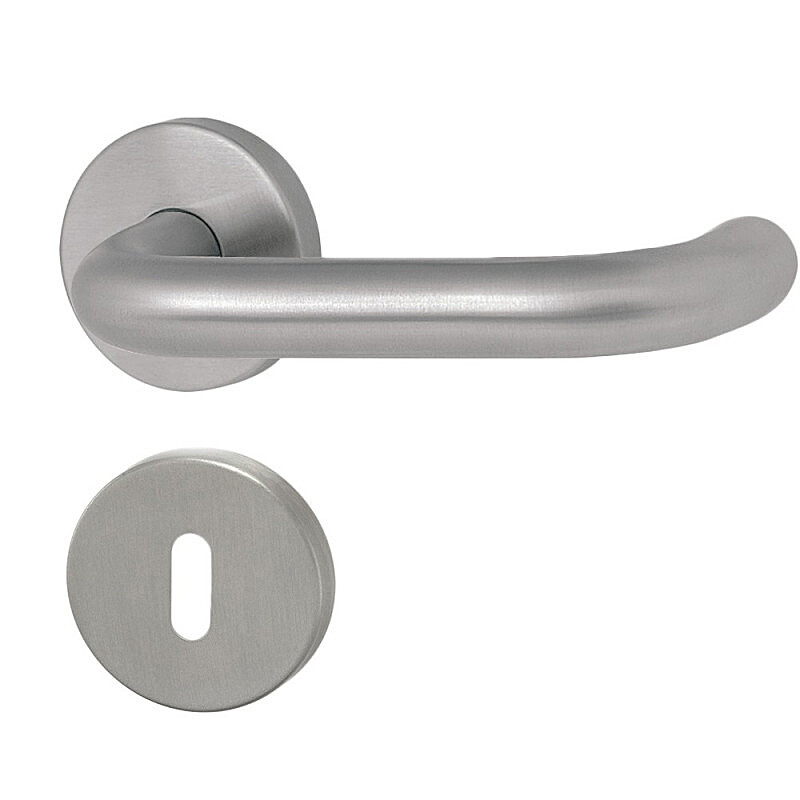 Der Türgriff MT 02 mit runder oder quadratischer Rosette eignet sich für die Montage im Innen- und Außenbereich, ist aus Edelstahl DIN 1.4301 mit seidenmatter Oberfläche gefertigt, zeichnet sich durch ein modernes und zeitloses Design aus, ist hygienisch unbedenklich und langlebig.