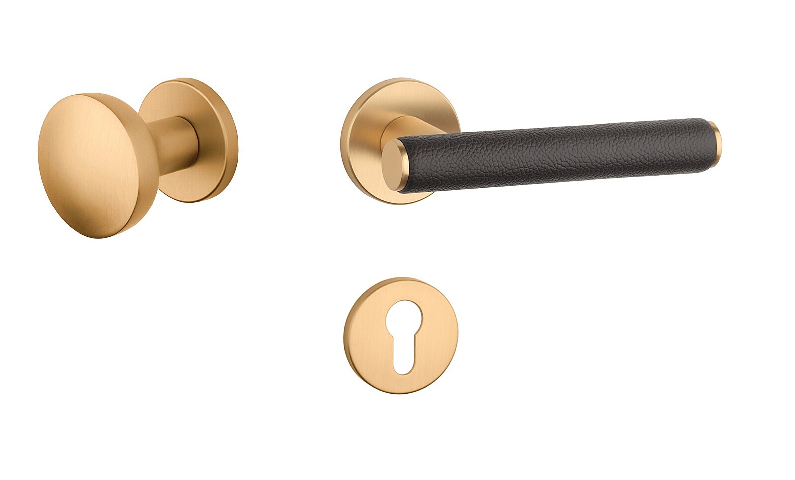 Türbeschläge MP AS - EGERIA - R 7S (OLS - Gebürstetes Messing / braunes Leder)
