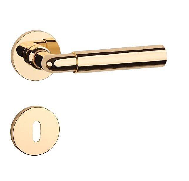 Der Türgriff mit runder Rosette für Innentüren ist aus hochwertigem Zamak gefertigt und oberflächenbehandelt. Die Rosette hat einen Durchmesser von 52 mm und ist nur 7 mm dick. Das minimalistische Design der Rosette sorgt für einen sicheren Halt des Griffs an der Tür und lässt so das Design des Griffs selbst besonders gut zur Geltung kommen.