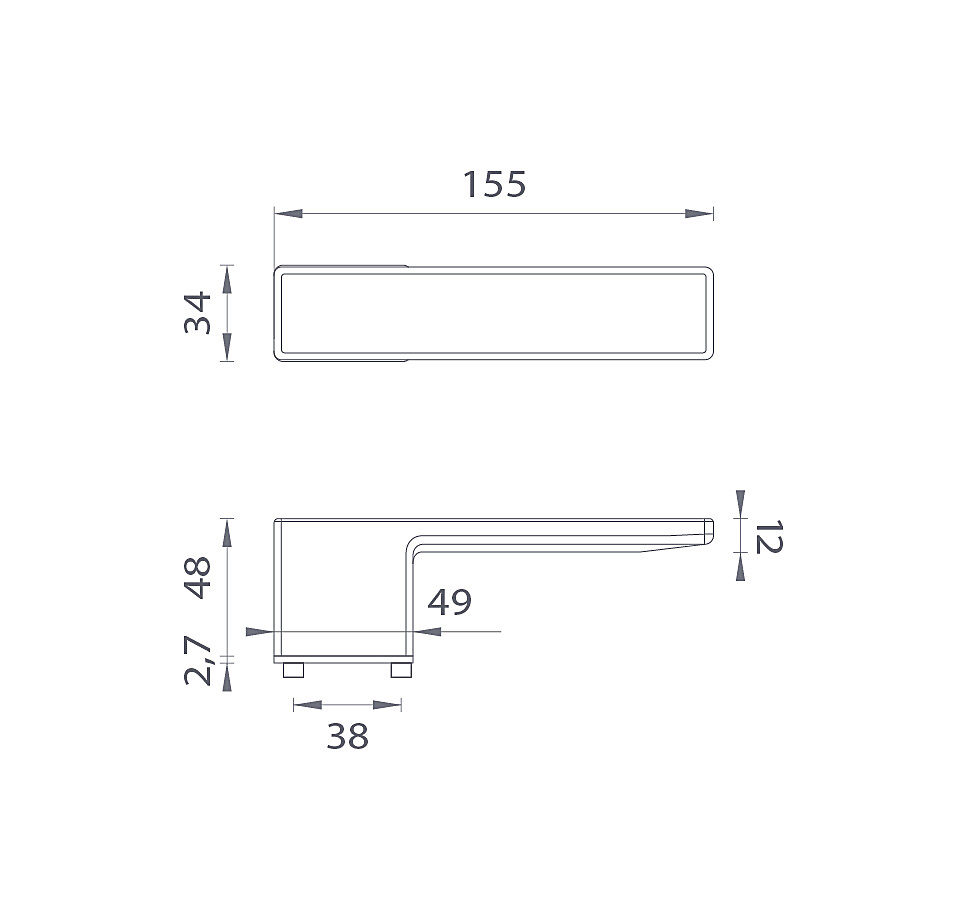 Der Rosettengriff an der Innentür mit eleganter rechteckiger Rosette besteht aus hochwertigen Materialien – Zamak und ist oberflächenbehandelt – schwarz matt eloxiert. Die Rosette misst 48 mm x 34 mm. Es ist nur 2,7 mm dünn und wird so zu einem nahezu unsichtbaren Teil des Griffdesigns.