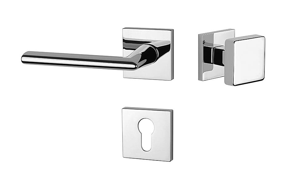 Der Rosettengriff für Innentüren mit quadratischer Rosette besteht aus hochwertigem Zamak und ist oberflächenbehandelt. Die Rosette hat die Abmessungen 52 x 52 mm und ist nur 7 mm dick. Das minimalistische Design der Rosette und die hohe Stabilität des Griffs an der Tür wirken subtil und lassen Raum für das Design des Griffs selbst.